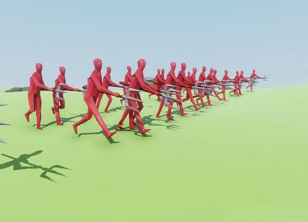 第六关:12盾牌兵,38野蛮人,主要用盾牌兵撞开对方盾牌兵。