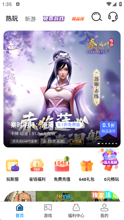 免费送首充,648充值卡,免费月卡,海量礼包;