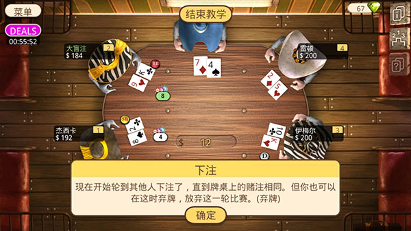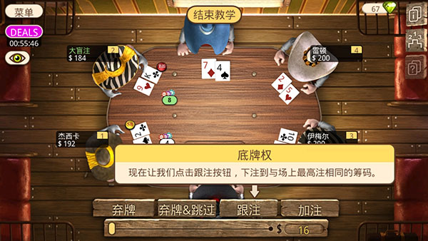 如果你想看看其他牌手怎么做,这时你可以点击让牌按钮,不加注来跟牌。