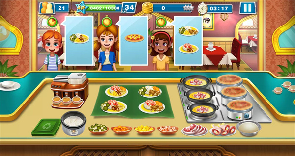 1、玩家能学会时间的搭配利用。招待各式各样的顾客,赚取盆满钵满。简单在萤幕上拖拽点击,你就可以体会到制作天下美食的快乐。2、精心设计12个餐厅,升级装潢由你做主,对了,别忘了升级你的餐厅还有烹饪设备哦,操作简单,画面流畅。