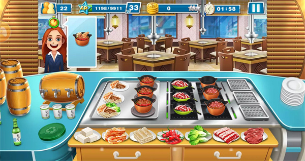 美食烹饪家官方版是一款餐厅模拟游戏,非常精美的游戏画风,游戏玩法也非常简单,在屏幕上拖拽点击,你就可以体会到制作天下美食的快乐,还能学会时间的搭配利用。玩家需要通过不断的升级,吸引的客户越多,为你所赚取的收入也就越丰厚,能不能将你的店铺经营成知名的商铺,这全看你的手艺咯,在游戏中玩家既是厨房的主厨,也是餐厅的管理者,为保证餐厅的营业,你需要合理分配时间来满足不同顾客的点餐需求,还要发现新的美食来补充餐厅美食种类,招揽顾客,热情的为每一位顾客服务,从而赚取更多的金币,努力以最快的速度做好美味的食物是关键,速度越快顾客小费给的越多。游戏中为顾客提供了中餐、西餐和印度餐各式料理各有千秋,汉堡、炸鸡与可乐,甜筒、冰淇淋杯和巧克力杯,还有美味的蛋糕、披萨与寿司更是让人垂涎欲滴,快来挑战吧!