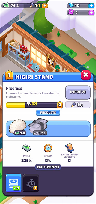 玩家的寿司店等级提升后可以解锁仓库、花园、菜地等新的场景。