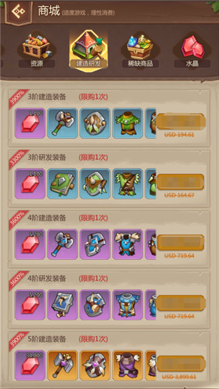 建造研发套装:减少建筑和研发所需要消耗的材料,一旦购买穿上,属性永久有效!