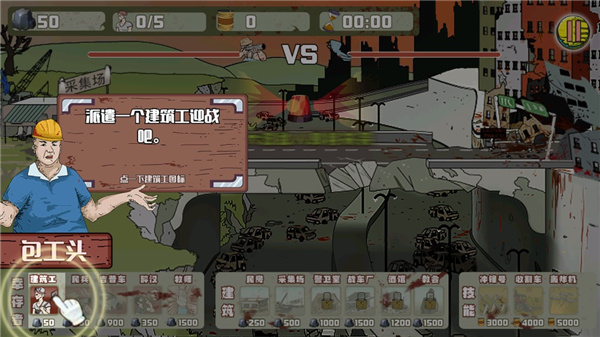 5、当僵尸来势凶猛时可以多添加一些建筑工加入战斗;