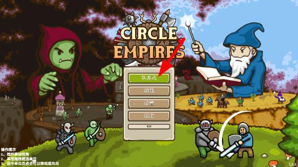 1、下载环形帝国手游最新版,运行游戏,选择新游戏;