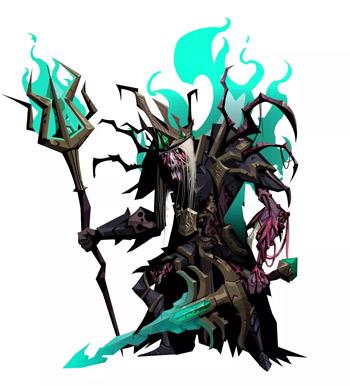疯国王的有五种技能,其中最常见的是横劈,挥砍以及灵魂汲取。横劈与挥砍都是物理伤害,灵魂汲取的效果则是产生一个永生buff让疯国王获取能量。