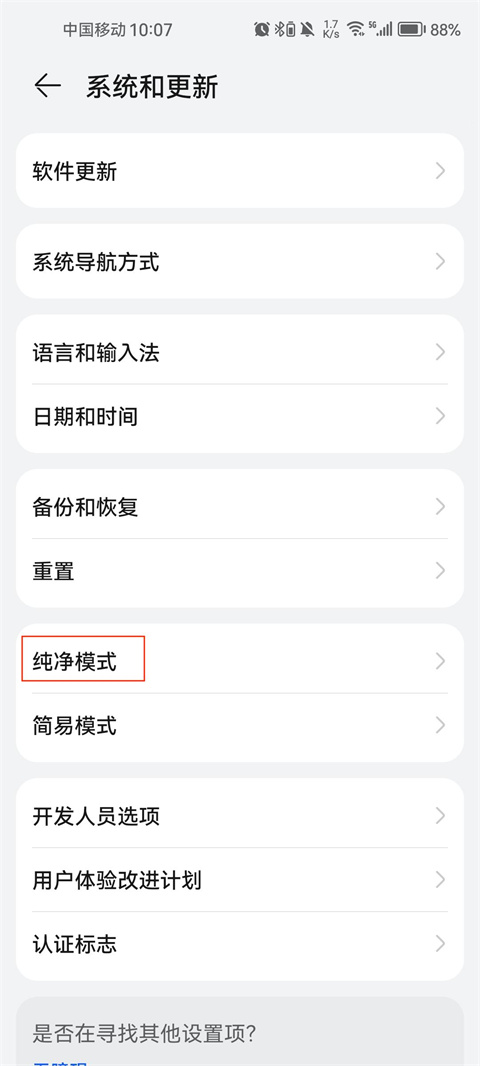 2、在系统和更新页面点击纯净模式。