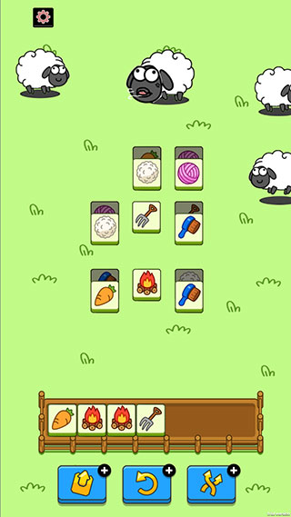 5、当你把下方的槽收集满时,也不会立即结束游戏,此时可以等待羊吃完场上所有方块进入下一关,或者点击左上角齿轮重开。