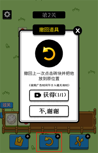 4、实在过不去的话,用个道具,撤回或者移除三个砖。