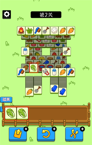 4、游戏左下角的按钮可以帮助玩家从方格中移出三个卡牌;
