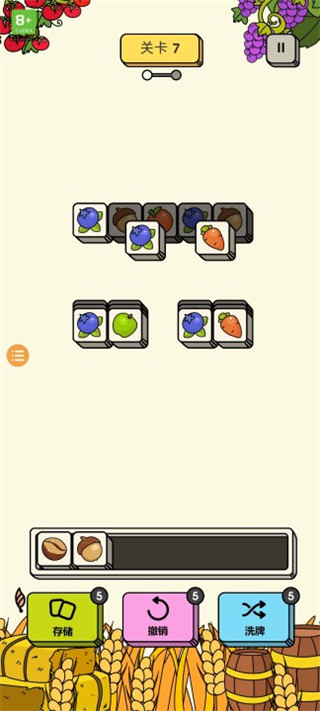 3、玩家们需要在屏幕中找出相同的三个图案,让后放在下方的格子中,玩到后面会越来越难,需要玩家们慢慢的思考,想出对策。