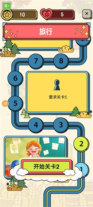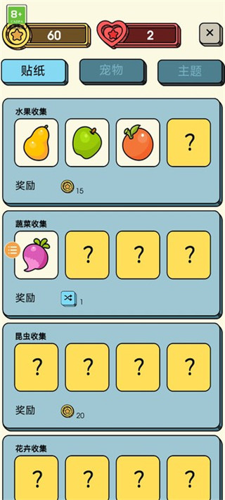 7、游戏中除了游玩之外还设计了收集系统,你可以通过收集可爱贴纸来获得奖励;