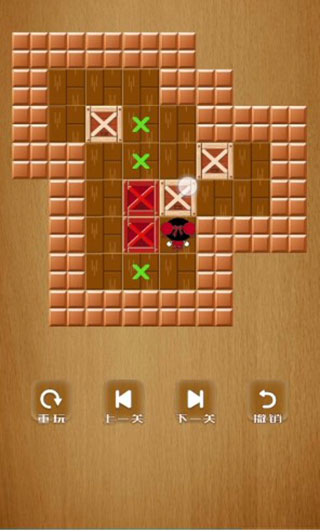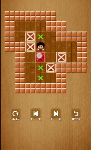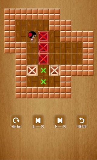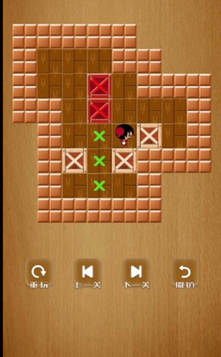 1、首先把最上面的箱子向左推1格,让人偶能去到左边,目的是把左边靠墙的箱子向上推。