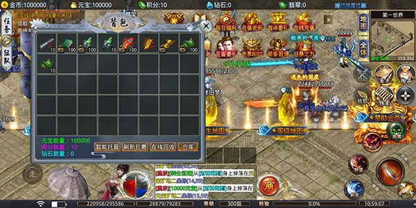 人物自动回收、超级复活装备、美人刀刀元宝、特殊BUFF[摄取]、人物爆率+888%等十余项好礼。