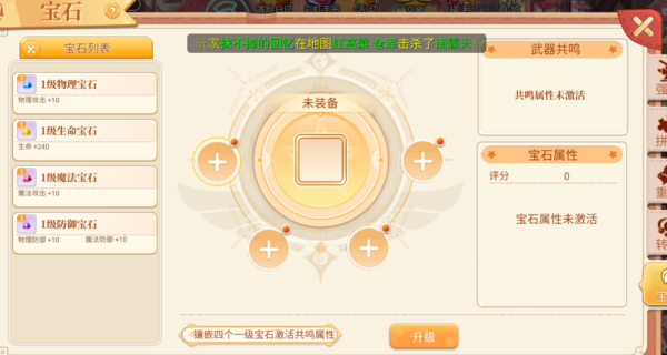 触发规则:单个装备栏拥有四个同等级的宝石就能激活共鸣!共鸣等级越高属性加成也就越多。