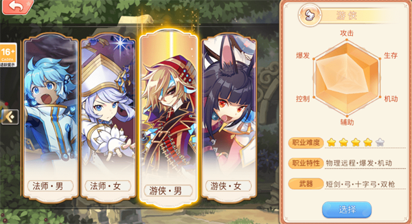 这一位是远程物理攻击和高机动性能游戏角色,有别于一般游戏远程弓箭手,这个游戏里的游侠虽然有弓箭手的优点,远程物理攻击,但也能在近战过程中展现出高爆发的伤害,感觉更像刺客再加上弓箭手的组合。其机动性能再加上远程输出是很多玩家们的首选,谁不希望做一个酷酷的游侠呢。