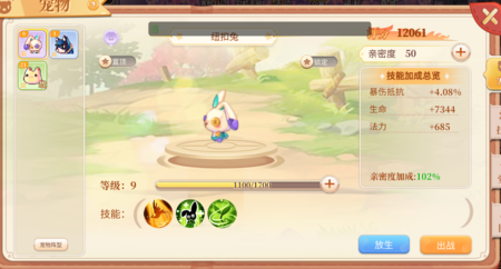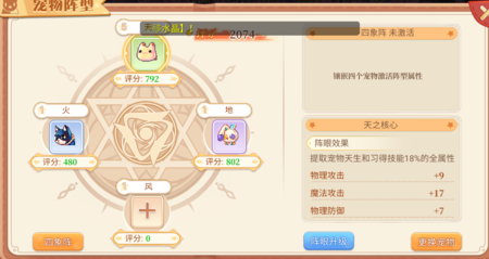 别忘了,觉醒完宠物后,我们就可以让这个宠物学习技能和增加亲密度!随后把宠物放到宠物的阵型里!当阵眼等级越高,那么可以增加的属性也就随之而高!