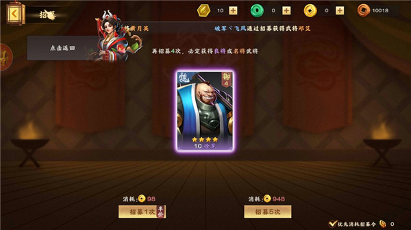 8、我们这里直接出了4星的徐晃,值得培养,运气不错;