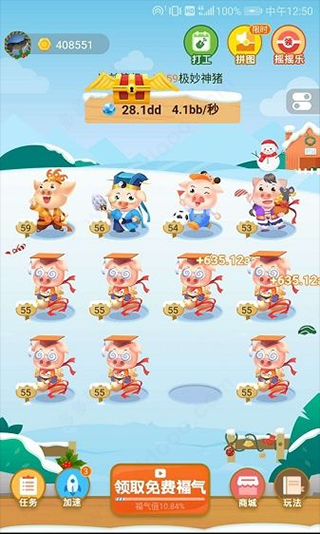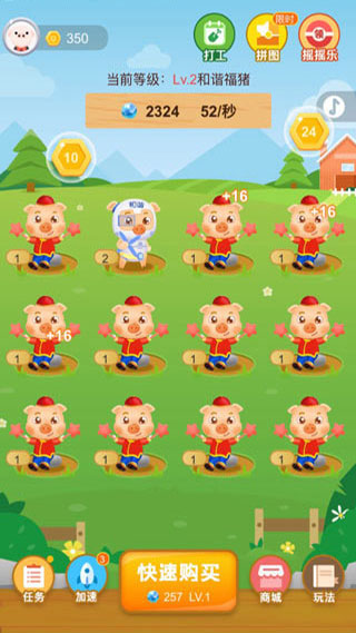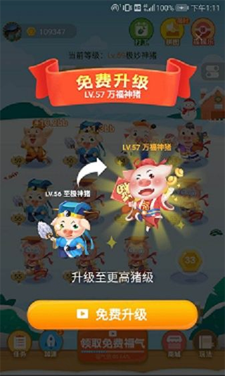 4、不断解锁更高等级的福猪,升级经验、等级以及增长速度等。