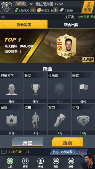 在这里可以购买和出售任意的球员,通过出售不需要的球员获得合同币,用合同币购买你心仪的巨星。梅西,C罗加入你的豪门俱乐部不再是梦。这里根据市场需求有真实的价格波动,在心仪的巨星低价时,尽快签约吧。