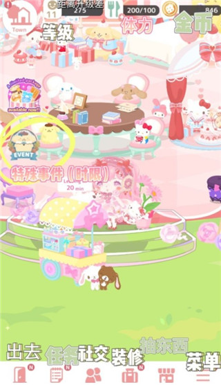 而且回到游戏本身来说,它有着十分Q萌可爱的游戏画面,以及超多好看的角色以及宠物。我们熟知的三丽鸥角色都可以在这里一一找到,Hello Kitty、KiKi&LaLa、美乐蒂、布丁狗、大耳狗都有,玩家进入游戏就可以选择它们中的一个成为你的宠物。玩家不仅可以和我们的明星角色互动,更能够自由装扮房间,邀请朋友来家里开派对、投喂它们,完成各种任务。