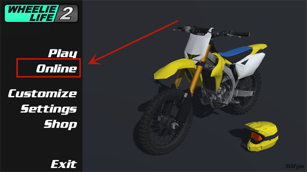 2、当设置完成后可以点击游戏主界面的“play”或“online”即可进入游戏,游戏的操作也很简单,左侧按钮控制方向,右侧↑按钮可以控制摩托车抬头,而下侧两个按钮则是刹车键与油门键