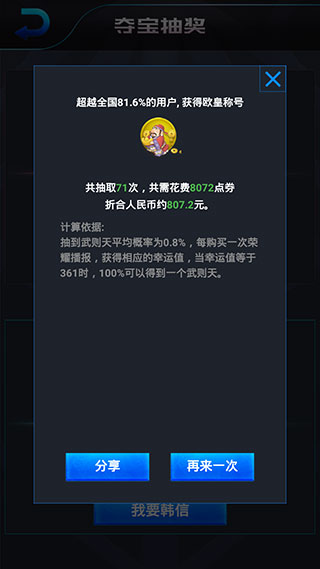 在这里,你可以测试出抽到韩信/武则天的次数,结果很是刺激哦。