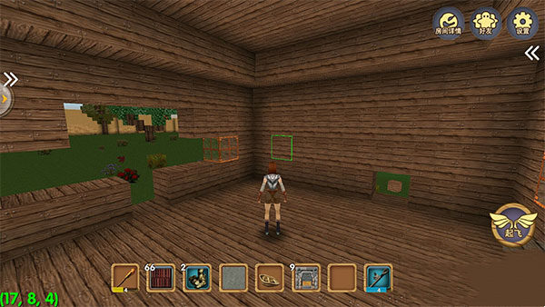 玩家进入游戏的时候可以先创建一个创造模式的世界,进入新建造的世界之后大家可以看到一个小房子,那是游戏中的固定出生点。玩过一段时间的玩家都知道游戏中有一个天空城,大多数人只有到后期等级较高才有能力去往天空城打怪。创造模式中玩家不需要考虑自己的等级直接点击起飞就行,大家可以运用这个模式了解到天空城。