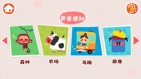 在果园、花园、庄园等地认知声音,培养他们的乐感。