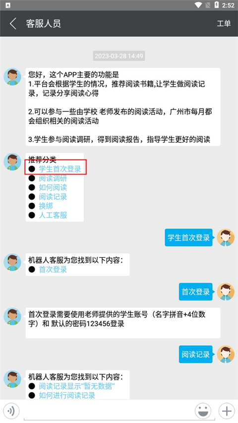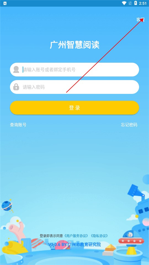 1、在本站下载安装并打开广州中小学智慧阅读平台APP,进入软件,用户可以点击右上角的客服点击进入页面。