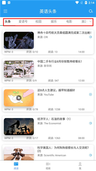 英语阅读街是由北京爱语吧科技有限公司全力打造的一款英语新闻聚合软件。这款软件的产品逻辑跟今日头条是相类似的,用户可以在这里获取到国内外的最新新闻资讯,这其中包括了纽约时报、时代周刊、CNN、路透社、BBC、VOA、 金融时报等国际上知名新闻媒体的内容,官方表示后续还会有更多的媒体加入到其中,平台上传的所有文章都是由公司专业团队人工翻译的,不会出现机器翻译的语法错误或是翻译生硬的问题,所有的新闻资讯都是中英双语。在开始阅读之前,大家可以在英语阅读街app中设置好自己的英语水平或者说是阅读难度,从小学到专四、专八、商务英语等,同时系统也会根据你阅读每篇文章的阅读时间和阅读速度来判断你对英语的掌握情况。当然学习一门语言的关键并不止有用眼睛去看,我们还得用嘴巴去读,在每看完一个视频以后我们都可以点击评测进行学习成果的检验,多多练习才能提高英语。欢迎有需要的在本站下载学习。
