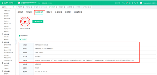 2、找到公司管理-工商注册信息