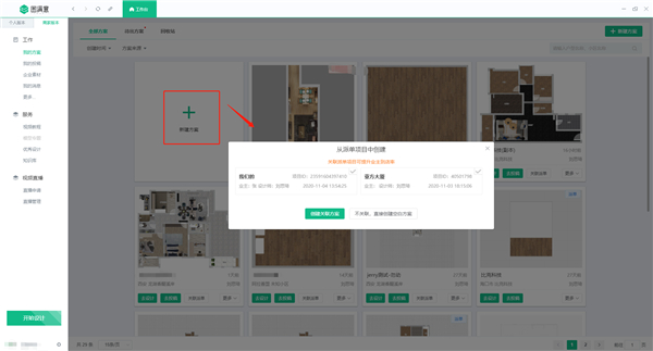 2、点击我的方案界面,直接新建方案即可弹出项目关联提示。