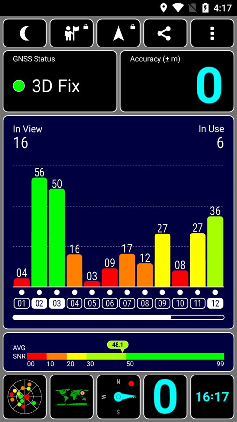 3、GPS信号(SNR),条形图,显示出每颗卫星的信号强度,以及精度和GPS状态。