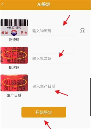 3、进入AI鉴定,输入物流码、输入批次码,输入生产日期,点击下方的开始鉴定进入;