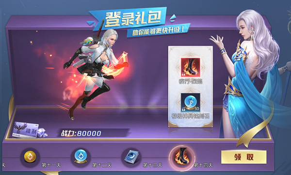 2、登录礼包:十四日登录,每日都能领取丰富豪礼,最后一日还能领取疾行特效,非常炫酷。