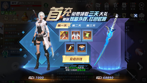 5、充值礼包:游戏内各种充值活动都能使用0.1折优惠进行解锁,轻松领取丰富充值礼包。