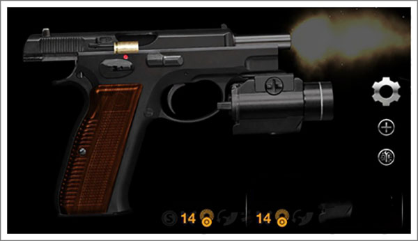 这款游戏的玩法就是真实开枪的全过程,打开保险,上弹夹