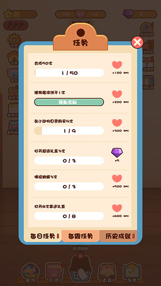 5、给猫咪投喂魔法饼干,可以增加爱心的产出速度。