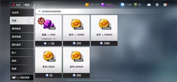 每天有3次5折的和3次7.5折的钻石买体力,前期建议买掉,毕竟有了体力才有获取资源和材料的资本。而钻石买金币是相当亏的,建议非大佬不要碰。