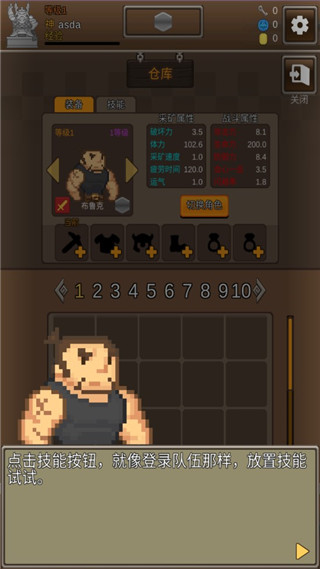游戏还有个神秘商人系统,路过你的矿洞卖东西,这种随机性让人期待每次探险都能遇到不一样的宝物。新手攻略看起来还挺直观的,取名字、安排战斗顺序、装备道具这些步骤都比较清晰。