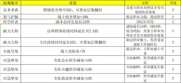 B级大部分是对技能的强化,虽然限定了职业和对应的技能,但是加成的数值可以说是很爆表的,如果你遇到你职业需要的BUFF,那么这一轮你一定可以打出一个不错的成绩的!
