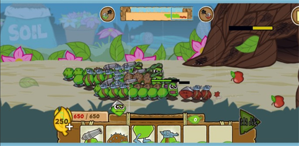 3、玩家在这里将会到领你的军队打败敌人,首先你必须武装你的毛毛虫大军。用喷火器、粘稠的蜂蜜、地雷、机械枪等多种装备从头武装到脚!