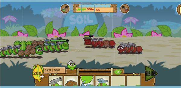 4、先派出一个简单的毛毛虫,阻止敌方的进攻,然后再利用积攒的叶子制造出更加强大的毛毛虫。