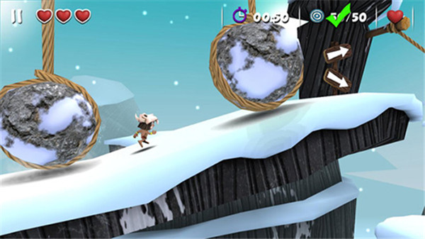 1、【画面:鲜艳活泼】第一次进入游戏,笔者就不禁被鲜艳的3D画面所折服,游戏的画面非常清爽干净,各种颜色的搭配相当舒服、养眼。游戏提供了森林、雪山、洞穴三大关卡,每一大关的场景设计都相当出色。