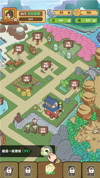 1、下载并安装本站提供的不一样的度假村,打开点击开始游戏2、首先点击屏幕中间,消耗金币建造一座酒吧