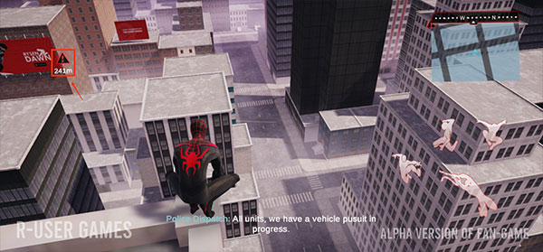 4、成为灵敏机智的蜘蛛侠,使用蛛丝荡、攀爬墙壁、投射蛛网;