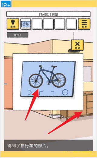 2、在游戏界面的桌子上找到照片即可获得自行车道具。