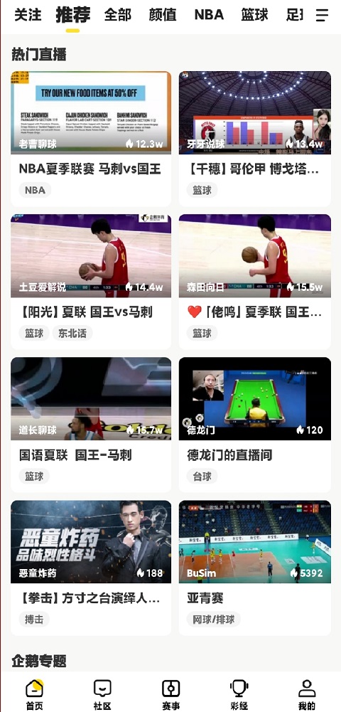 实时直播和回放功能让你无论身在何处都能尽情享受体育盛宴,确保您不会错过任何精彩瞬间。企鹅体育app还提供社区、赛事预测和一键预约等功能,更多玩法等你来!