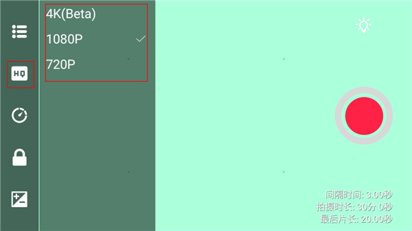 软件还有一些特别的功能,比如锁定白平衡、对焦和曝光,这样可以让视频效果更稳定。还有电影模式开关,在画面上下加黑边,看起来更有电影感。另外,支持4K、1080P和720P三种分辨率,推荐用1080P,因为处理起来不会太吃力。